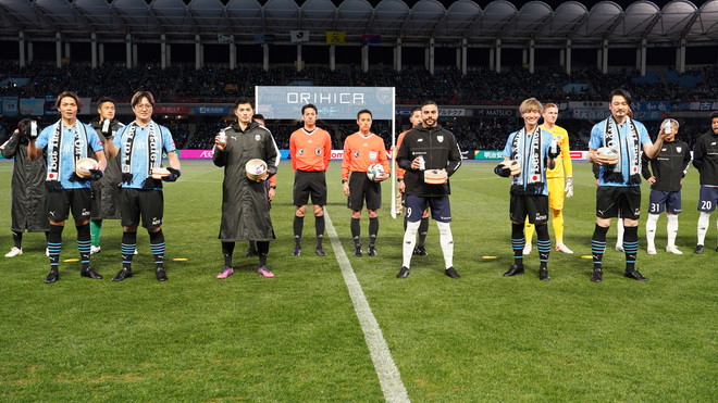 純烈、川崎フロンターレ開幕戦で“史上初”ダラケの始球式