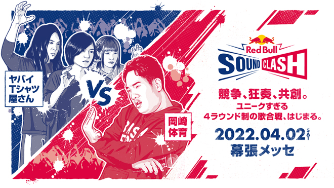 レッドブルが仕掛けるユニークすぎる音楽対決イベント<Red Bull Sound Clash 2022>で、4月2日(土)幕張メッセにて激突するヤバイTシャツ屋さんと岡崎体育。