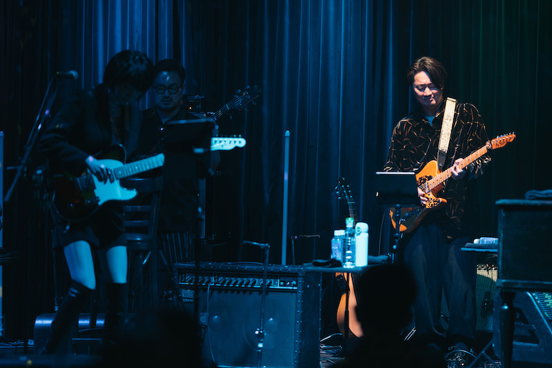 中盤で印象的だったのは、2021年にNHKの音楽番組『うたコン』でも披露した八神純子の「みずいろの雨」。吉田が爪弾くボッサ調のアコギにLittle Black Dressがスキャットを重ねる幕開けから恍惚として聴き入ってしまう味わい深さがあり、次第にジャジーなアレンジに移る中、「ずっとカラオケの十八番だった」「雨で人の心模様を表すっていうのは、日本人ならではの感性でとても好きです」と演奏前に話していたリト黒の感情の込め方、楽曲への憑依ぶりが絶品で、歌謡曲に対する想いがより生々しく伝わってきた。