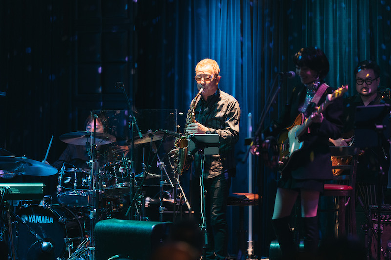 Little Black Dressのそんな言葉が聞けたアンコールでは、「令和のシティポップをお届けいたします」と自身のオリジナル曲「雨と恋心」を、文化を受け継ぐようなトーンで、このメンバーのクリエイティビティが光るアレンジで披露。ラストは再びアッパーに転じ、1986オメガトライブの「君は1000%」、アン・ルイスの「恋のブギ・ウギ・トレイン」をメドレーで活き活きと繋ぐ。都会の夜を彩る華々しいサウンドに加え、アウトロにおけるリト黒と鈴木の掛け合いが最高で、彼女のシャウトにむせび泣くサックスが応えるというライブ感に満ちた大ハッスルぶりに、バンドの全員から屈託のない笑顔がこぼれる。オーディエンスのボルテージもピークに達し、万雷の拍手があふれる中で7人はステージを後にした。