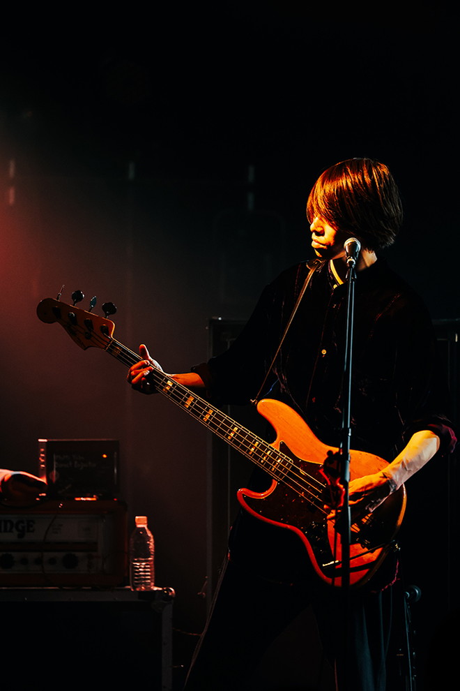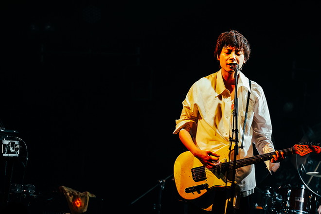 そして主催バンドであるLEGO BIG MORLが登場。この日はデビューアルバム『Quartette Parade』収録の「ワープ」でスタートし、15周年イヤー最初の配信リリース曲「潔癖症」と続いていく。
