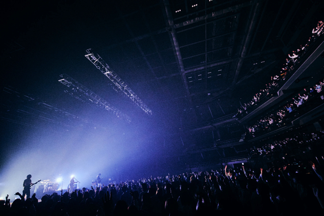 「まだまだ行けますか?」とフジムラが声を上げ、バンドはラストスパートを掛けるように「パレット」「約束」とアップテンポのロックナンバーをたたみかける。