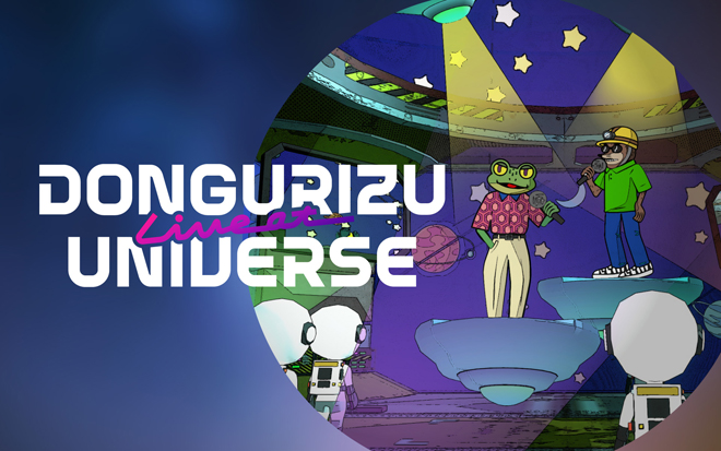 VRライブ<DONGURIZU Live at UNIVERSE>は、VR表現技術を突き詰めることでアーティストが望む高品質な表現を可能にしており、現実空間では味わうことのできない仮想空間ならではのライブを体験できるという。また今回のVRライブは、凸版印刷株式会社によるVR空間における音楽ライブの芸術表現技術と大規模同時接続に関する研究実証(POC)として実施され、栄えある第一弾アーティストとしてどんぐりずが選出された。