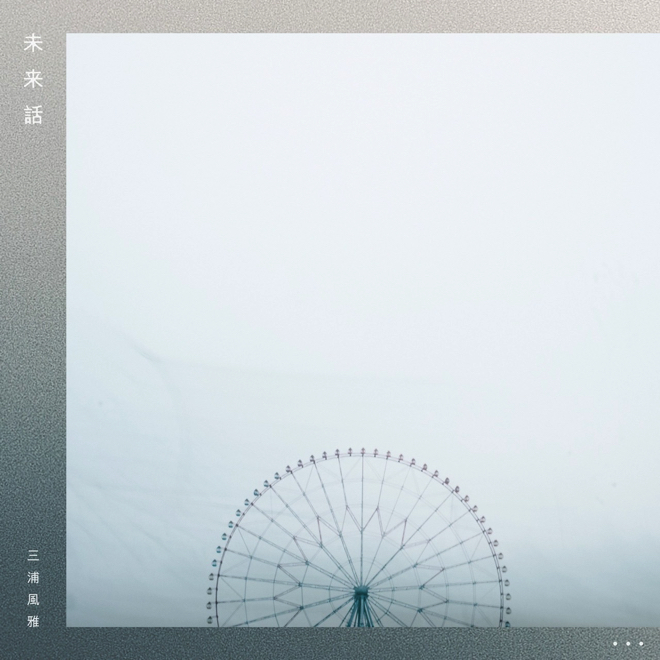 現在と過去、未来という時間の進みを考えた時、今、この瞬間はもうすでに過去という概念になってしまうんだなと、最初に「未来話」を聴いて思いました。全て過去になってしまう時の流れの中で未来を向いて進むしかないんだなと。そんな想いを、観覧車の回転と時計の秒針が進む描写で表現しました。