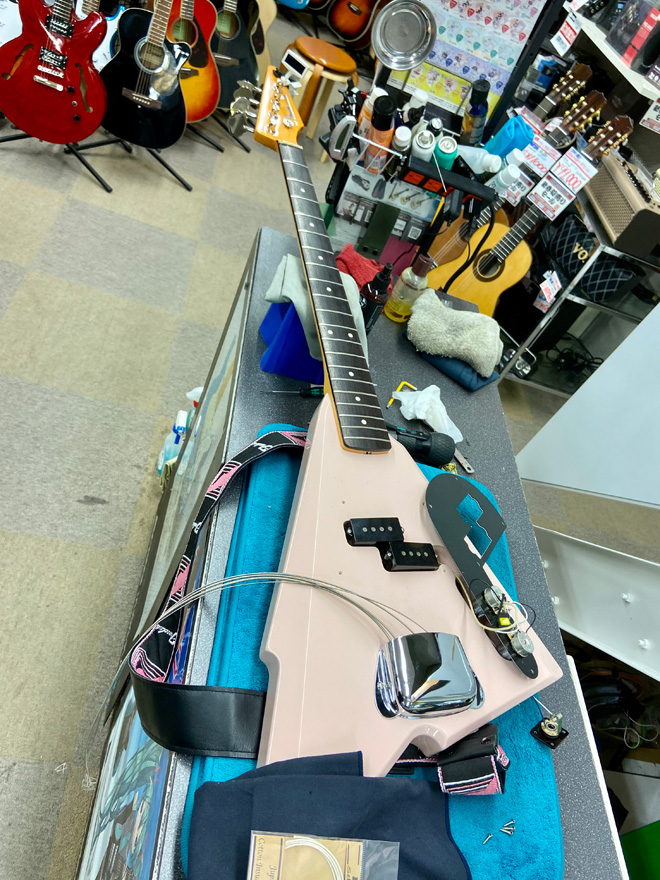 ストラップなしでは座って弾けない少し不便でかわいいやつです。特に尖ったヘッドが大好きです!見た目もサウンドも最高です。この先死ぬまで持っていたいと思っています。