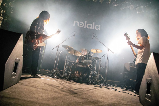 柔らかなライトに照らされSEと拍手に迎えられ登場したnolala。ステージ上で円を囲んだ後、三方へ弾け、ブリッジミュートから始まる、「大人になったら」でライブの幕を開ける。nolalaの定番曲である「埋まらない空白を辿って」「ロンリーガール」を続けて披露。「私と居たこと」では、別れる前の何とも言えない複雑な想いが見え隠れする歌詞世界をみせた。