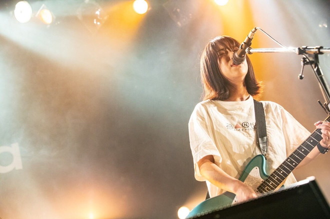続けて、「ハルカゼ」では、切ない恋模様を春の季節にのせて力強く歌い上げ、オーディエンスの心をグッと掴んだ。そして、「蜃気楼」「宝箱」を続けて披露し、この曲を作ってちょうど10年ぐらいになるのかなと語り「ユメの唄」と、懐かしの楽曲を4曲続けて披露した。