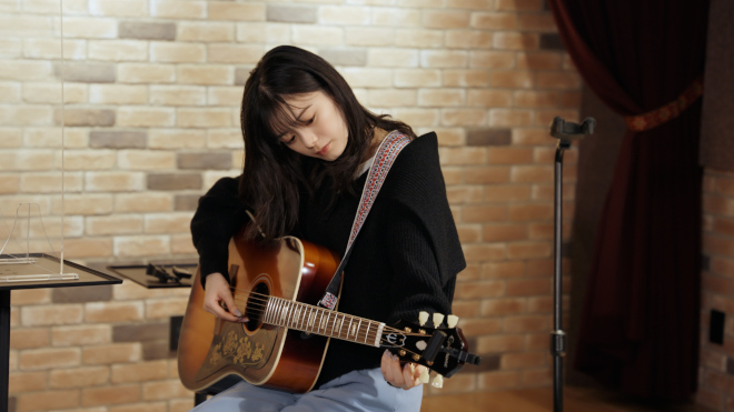 エピフォン、紺野彩夏がアコギ女子を目指す動画を公開
