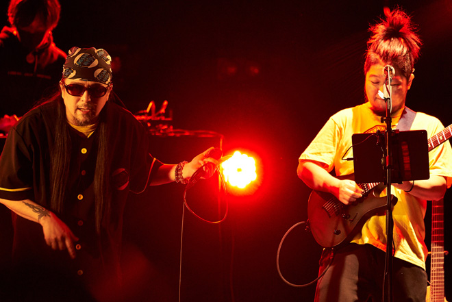 アンコールは「Blindman’s Buff」。al.ni.co唯一のアルバム『セイレン』収録曲だが、いわゆるグランジの暗黒面を象徴するようなタイプの楽曲で、閉塞感のある重苦しい音作りといいアイロニカルな唄い方といい、キャッチーな要素は何ひとつ見当たらない。こんな曲が日本のメジャーレーベルからリリースされていたなんて、と、今となっては驚きを禁じ得ないが、リリースから23年経った今なおこの曲をライブのオーラスに持ってくるところにも、彼のアーティストとしての矜持を感じる。ウケそうとか売れそうとかそんなことは関係なく、自分がカッコいいと信じることをやるのみ。その姿勢こそが彼のロックであり、プライドなのだろう。演奏の最後には渾身のハイトーンシャウトを、しかも音程を変えて数回ぶちかましてくれたが、自信とパワーに満ちたその姿はオーラを放ち輝いて見えた。