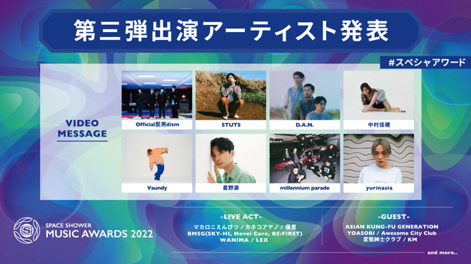 3月15日に開催される「SPACE SHOWER MUSIC AWARDS 2022」の出演者の追加発表が行われた。