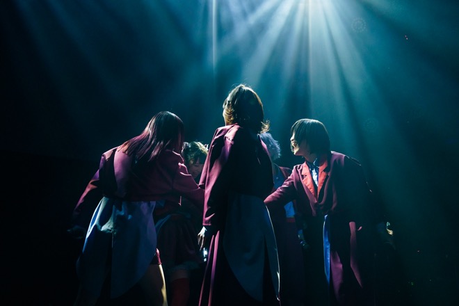 中間SEを経て、心模様を投影したセンチメンタルなセクションへ。「さめないワナビー」の歌ではメンバー個々のキャラクターや等身大の感情を現代的モチーフで表現した一方、ダンスでは可愛らしい仕草が活かされた。「sugar beat」で聴くことができたのは、メンバーの、女の子の本音だ。静かな葛藤と複雑な女心が語りパートで繰り広げられたが、それでも鬱々としないのは、同曲をお気に入りとして挙げている双詩科なのはをはじめとしたメンバーの表情と声色があるからこそ。こうしたチルポップに乗せた豊かな表現力も特筆すべきところ。「まざらないや」には、今後の布石とも感じさせる大人びた側面をも見せた。