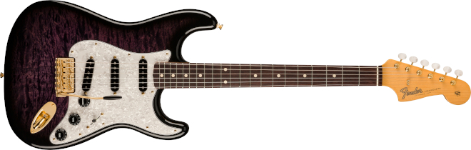 今回の発表のために、ユーリ・シスコフは最高級のキルトメイプルをふんだんに取り入れ、気品漂うディープパープル仕上げの見事なストラトキャスターを製作。Prestige Quilted ’60s Stratocaster(R)は、4Aクラスのキルトメイプルトップを備えたNOSウレタン仕上げのローストアッシュボディに、ゴールドのハードウェア、ホセフィーナ・カンポスによるHand-Wound ’60s Strat(R)ピックアップを搭載している。(希望小売価格 1,560,900円/税込)