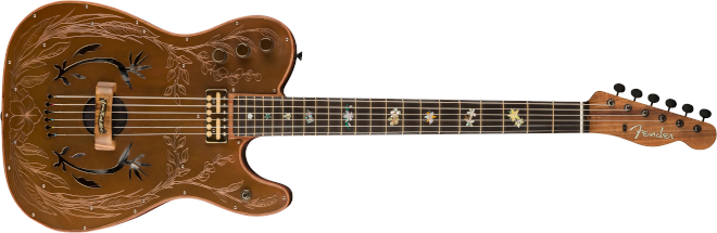 革新的な本モデルの仕様は、マール・ハガードのエレクトロニクスに、ホセフィーナ・カンポスによる手巻きのピックアップが搭載。ニューマンのアートワークをまとったボディにはアンティーク調の加工を施されたアッシュ材を採用。南西部の美学に対する敬意と愛に溢れたこのモデルは、ギター愛好家だけでなくコレクターも垂涎の1本に仕上がっている。(希望小売価格 2,754,400円/税込)