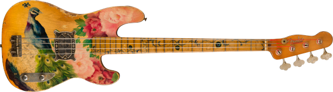 オウムのブリーダーで鳥類愛好家でもあるイアン・ウォードと2021年にFlamingo Telecaster (R)を製作したヴィンセント・ヴァン・トリグトは、彼の描く艶やかな鳥のイラストに触発され、再びイアンと作品をコラボレーションするに至った。ヴィンセントは、「音楽とは何なのかを問う上で、孔雀という生き物は歴史的にも、変革、修復、そして若返りを象徴。1952 Peacock Precision Bass(R)は、イアンのアートワークと見事にマッチしたインレイだけでなく、カスタムデザインが印象的なホセフィーナ・カンポスによる特別仕様のピックアップで飾られている。搭載された2つの’51ピックアップはシリーズ配線され、ZZ Topのダスティ・ヒルへのオマージュとして採用されたリバースヘッドがひと味違う新鮮な装いを演出している。(希望小売価格 3,613,500円/税込)