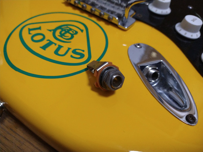 知人にロータス・エリーゼの塗料で塗って貰ったモモセのボディとネック、GOTOのペグ、トレモロユニット、Pickup、RawVintageのスプリング、フリーダムカスタムギターリサーチのジョイントプレート、CTSポット、オレンジドロップコンデンサー、ベルデン配線と一通り少しずつ改善してもイマイチだったストラトですが、スイッチクラフトのジャックに換えたらあら不思議、エリックジョンソンやリッチーブラックモア、ジミヘン、レイヴォーンのような“これぞストラト”って音になってしまいました。