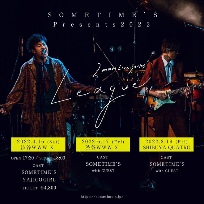 SOMETIME’Sが、4月16日に渋谷WWWXにてスタートする、2022年を通して開催する対バンライブシリーズ<SOMETIME’S Presents 2022 2man Live Series “League”>の追加公演開催を発表した。