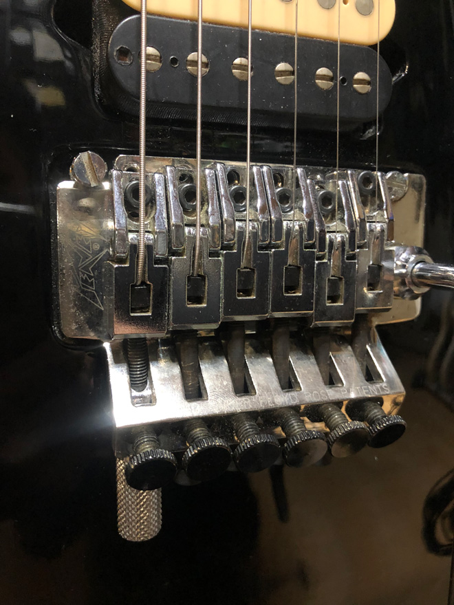 #1 Blackは、その後、市販されたPeavey Wolfgang standardとは、細部が異なりました。例えばFRTのPeaveyロゴなんかも、市販されたWgとは違っていた様子です。