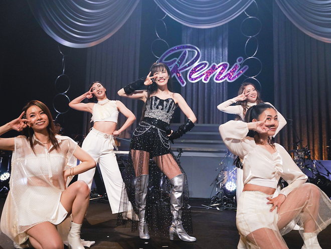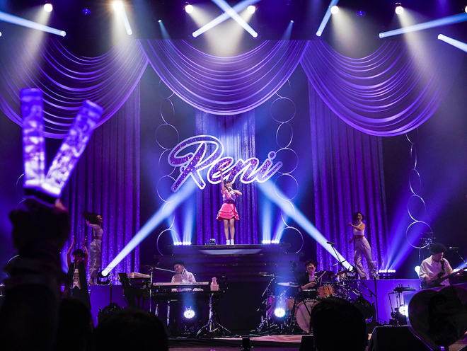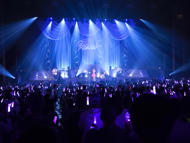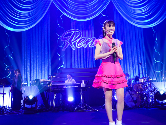 今回の<まるごれにちゃん>は、高城れにのONとOFFがテーマとなっており、オリジナル曲メインで構成されたコンサートであった。開演時刻になると会場に「overture」のオルゴールver.が響き渡り、ドーリーなピンクミニドレスに身を包んだ高城れにが4人のダンサーとともに登場。昨年8月にリリースされた初のソロアルバム『れにちゃんWORLD』のリードトラックである夏の青春応援ソング「SKY HIGH」を披露しライブがスタート。一気に「れにちゃんWORLD」の世界へと導いた。続いてソロアルバムに収録されている2曲をライブ初披露。シティポップチューンの「Voyage!」をダンサーたちとパフォーマンスし、ファンへの思いを歌ったバラードナンバー「何度でもセレナーデ」で透き通るような歌声を届けた。「れにちゃんWORLDへようこそ!」とファンへ呼びかけ、「会場に来る前に横浜中華街行った人―!大さん橋行った人―!」と横浜ならではの問いかけで、客席とコミュニケーションをとった。その後は自身の楽曲「じれったいな」、「Tail wind」を披露し会場全体のボルテージを上げ、島袋優(BEGIN)作曲・高城自身も作詞で参加した「『3文字』の宝物」を歌唱した。