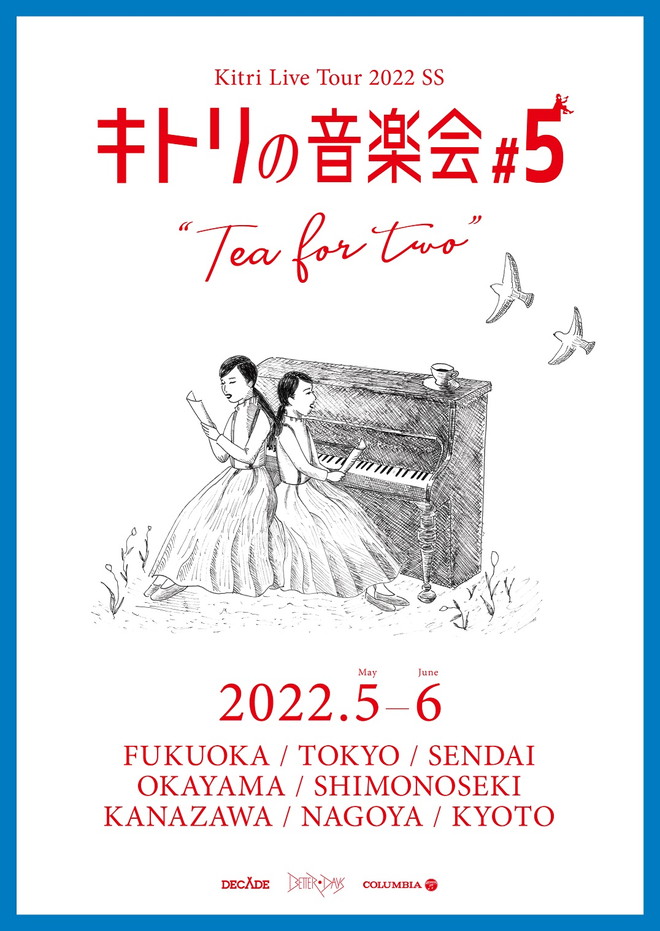 リリースとあわせて、ライブツアー<Kitri Live Tour 2022 SS キトリの音楽会#5“tea for two”>の開催も発表。今回のツアーは原点に戻り、Kitriふたりによる連弾とハーモニーで魅せるものとなっており、ファイナルはメジャーデビュー後初めてKitriのホームである京都で開催される。ライブの詳細は今後発表されていくので、お楽しみに。