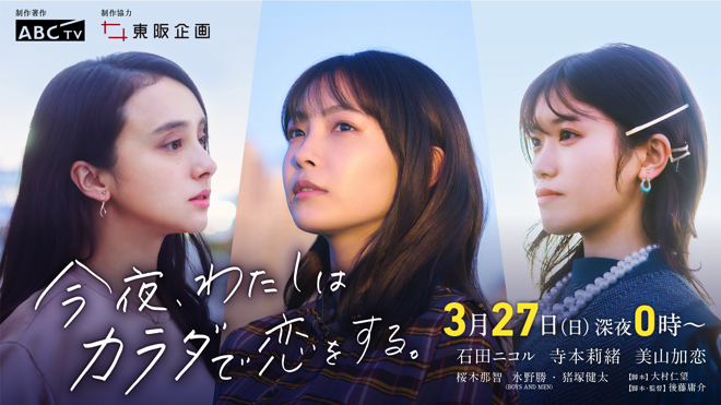 3月27日深夜に放送される『今夜、わたしはカラダで恋をする。』は、恋に対する悩みや葛藤を胸に秘めたヒロインたちが過ごす一夜の物語を描いたオムニバス・ラブストーリー。ハナフサマユは、石田ニコルが主演する“episode1『繋がってるのは、カラダだけ』”に「だらしない」、寺本莉緒が主演する“episode2 『君を抱きたい、と思った夜。』”に「アネモネの果て」、美山加恋が主演する“episode3『エッチなことしたいって言ったら、嫌いになりますか?』”に「Instinct」と、それぞれの物語に着想を得て制作した書き下ろしの3曲を提供する。
