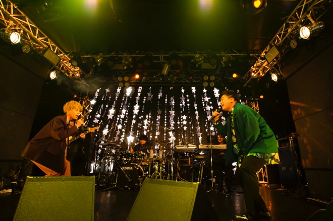 MCでワンマンライブツアーの喜びと感謝を興奮気味に伝えた2人。「やっと会えたファンだからこそ、まずはこの曲を」と、アニメ『名探偵コナン』のエンディングテーマであり、現在ミュージックビデオが245万回再生を超える代表曲「星合」を披露した。そして、ファンへ向けた3曲として「Make it Better」「Two of us」「オーバーライド」を披露。さらにはベースとドラムのセッションからの「Take mo’ chance」で一気に盛り上がり、ライブ前半が終了した。