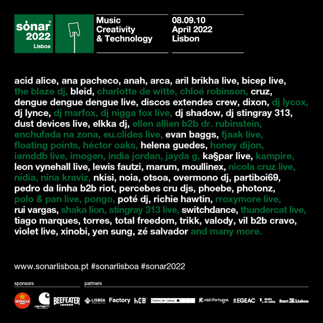 2022年3月のイスタンブールを皮切りに、4月には初となるリスボン、そして、6月には発祥地であるスペインのバルセロナにて、第29回目の開催が決定。今年、初開催となるリスボンでは、4月8日、9日、10日の3日間に渡り、“Pavilhão Carlos Lopes”、“Coliseu dos Recreios”、“Centro de Congressos de Lisboa”を会場に、デイプログラムとナイトプログラムが行われ、”Hub Criativo do Beato”での「Sónar+D」プログラムも予定されている。ポルトガルの首都リスボンの魅力を最大限に引き出すことが出来る独自の環境とロケーションによって、最先端の音楽、創造性、テクノロジーを通じた発見の旅となることだろう。