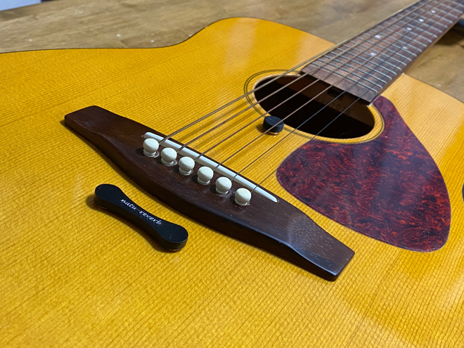 商品化においては、スプリングの質や大きさ・テンション・本数など、多くの試行錯誤を重ねたであろうことは想像に難くないが、基本的にオーソドックスなアコギで最大効果が得られるように設計されているに違いないと踏み、私はあえてミニギターでの使用感を確かめてみた。