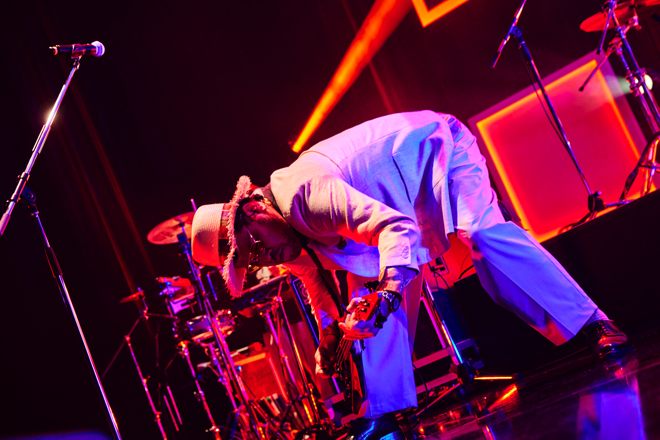 「コクーンさん」からスタートした中盤戦では、まずイッキュウがステージを大きく使って、コミカルな自己肯定ソングの「グータラ節」をオーディエンスに語りかけるように届けていく。小籔が細かなハイハットワークを聴かせる「BABY LADY」や、音数を絞った「プリマドンナ」といった曲の演奏からは、バンドとしての表現力の向上が確かに感じられた。