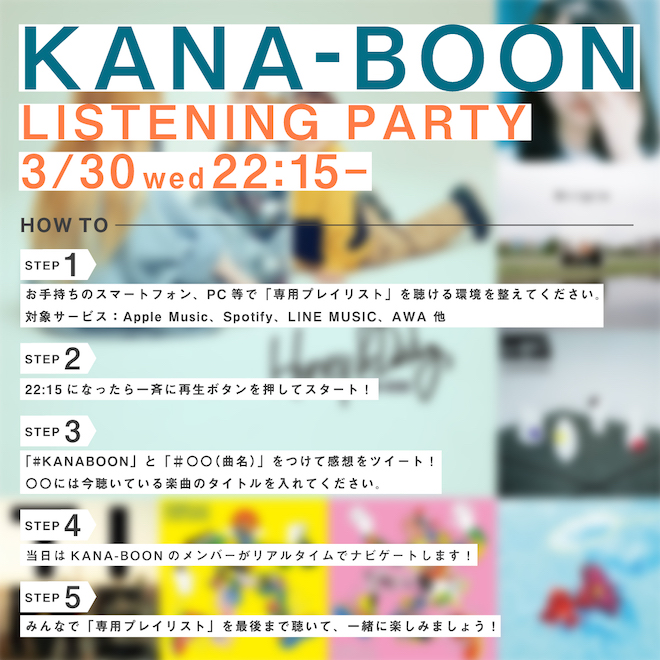さらに同日22時15分からは、メンバーによるリアルタイムでのナビゲートとともにKANA-BOON楽曲を聴くことができる、オンラインリスニングパーティーの開催も決定。参加方法はKANA-BOONの公式Twitterにて。