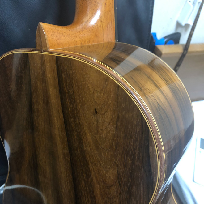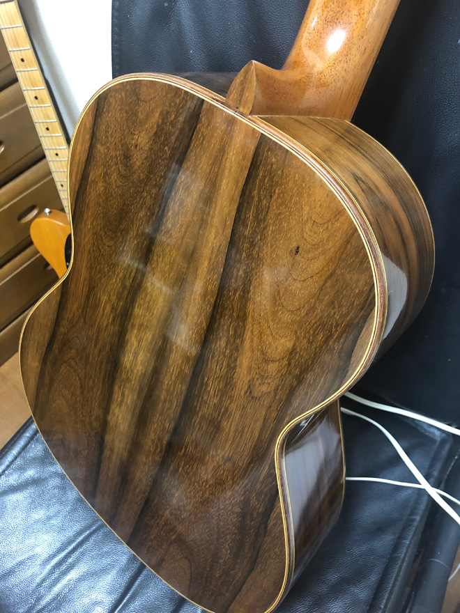 このギターからたくさんのことを教わりました。きちんと弾けば美しい音で応えてくれる、弾けていなければそのように。このギターを抱えて東京から小倉まで多くの街をソロギターライブで回りました。どんな会場でもマイク使わずに安心して弾ける、このギターならなんでもできる、そんな安心感を与えてくれるギター、生涯の宝物です。