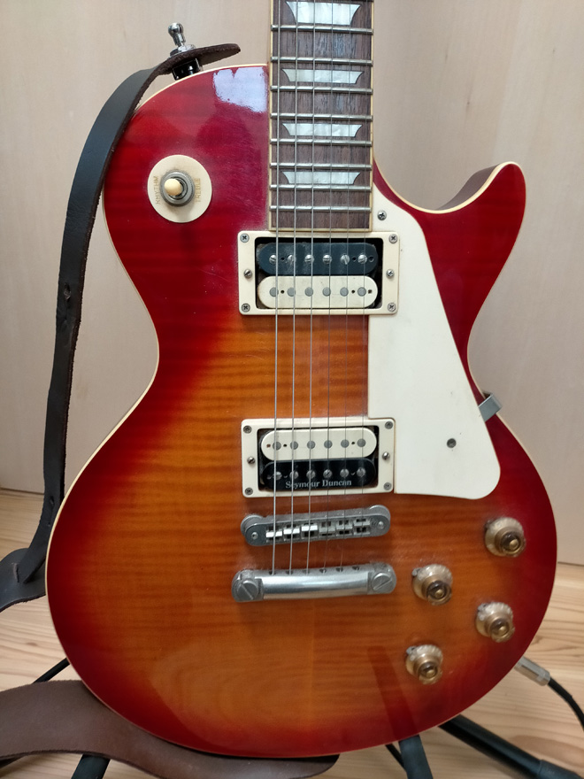 玄関のフロアにマーシャルの8080を置き控えめに弾いていました。PUに満足できなくてダンカンのSH4、SH4-1nに交換。音の跳ね返りに満足しずっと愛用しています。