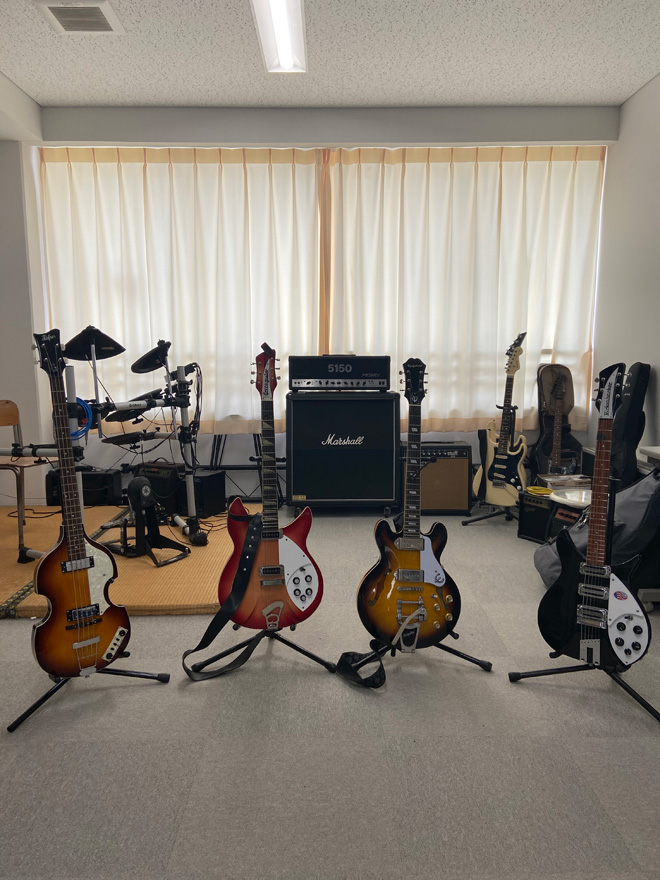 腕は2本しかないのになんでこんなにギターを買うの?と妻に呆れられながらようやく結成された我が家のなんちゃってBeatles! 笑ってやってください(笑)