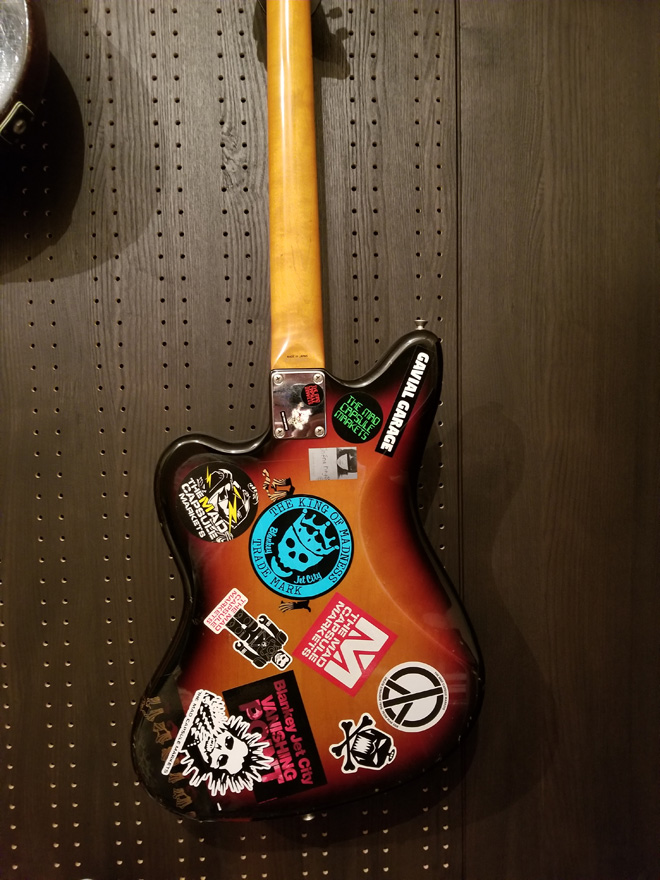 ブランキーから始まったと思われますが、ステッカーはマッドのオンパレード。どちらのサウンドもカバーしながら楽しめるギターと言えば、このジャズマスターでバッチリじゃないですか。グレッチじゃマッドはおぼつかないし、ジャガーもかっこいいけど、それだとベンジー・サウンドにはちょっと線が細すぎたかもしれない。それよりなにより弾きたい衝動に素直に従った「魂で弾く」さんの生き様こそ、このギターの魅力と共鳴する最大の要因でしょう。26年という年月はやっぱり重いです。こういう人に買われたギターは幸せですよ。素晴らしく素敵なギターライフだと思います。(JMN統括編集長 烏丸)
