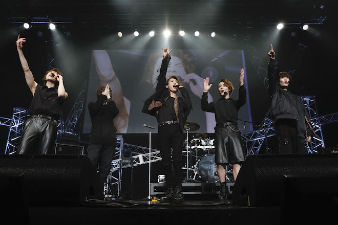 そんな暁の言葉にお馴染みのリフが続けば、あとは狂乱の宴。メンバーを含め会場にいる全員が大きく身体を振り、救いを求めるように腕を伸ばすダメ人間たちに「誰かの後ろに立てば自分の番は一生来ない!」「お前の欲しいものはそう簡単に手に入るもんじゃないってことだ!」と、暁は無慈悲な宣告を浴びせる。突き放すような言い草の真意は、“だからこそ必死で求めろ”ということだ。「不完全、出来損ない、大いに結構! そんなことより、今、ここで自分が生きてるんだって言えなくて、どうやって生きていくんだよ!」と間奏で叫んだ彼は、最後に“僕達、ダメ人間”と歌い終えるや「胸を張れ!」とシャウト。タイトルからは想像もつかないほどポジティヴなメッセージを叩きつけ、最後にこう告げた。