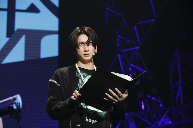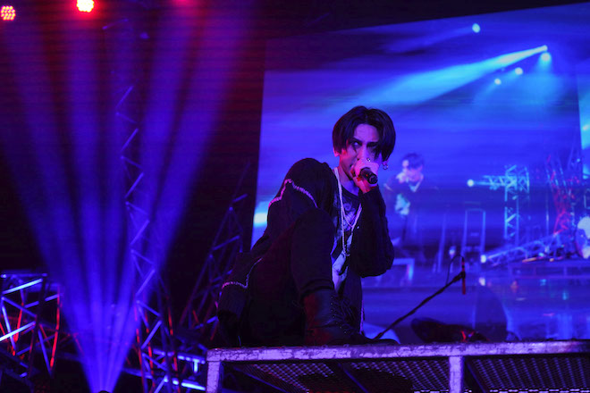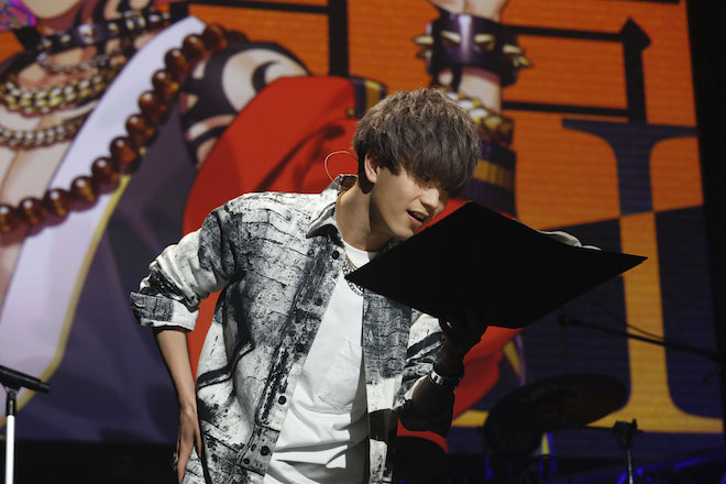 続いての朗読パートでは、特級有害人類Hの本名がARKと対立する“MAD FANGの秀吉”であることが判明。さらに「この太陽の申し子が“解放区”で一番ド派手なヤツを聞かせてやるぜ!」と宣言すれば、今度は“コラボ楽曲決定! MAD FANG×零[Hz]”の文字と共に、零[Hz]のステージが開幕する。