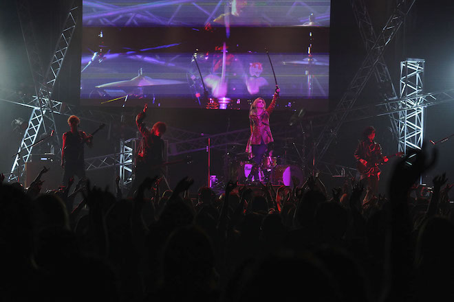 ROY(Vo)の強靭な喉から繰り出される爆発力の高いヴォーカルを軸に、生音とデジタル、アグレッションとメロディが絶妙のバランスを為す彼らの音楽は、なるほど“東京ミクスチャー・ロック”のコンセプト通り洗練されたもの。「さぁ、拳を突き上げてくれ!」のリクエストに客席中が従った「VENOM」、「難しいことは考えずに零[Hz]の音楽を楽しんでいってください!」の声にモッシュで楽しむ「IDEATRUMP」と、オーディエンスに対する牽引力も確かだ。