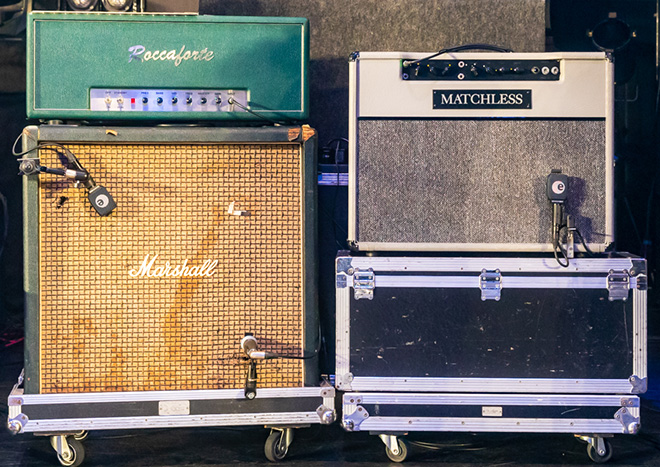 一方、写真右のマッチレスDC30は基本的にクリーン用としながら、曲によってロッカフォルテと使い分けているそうだ。