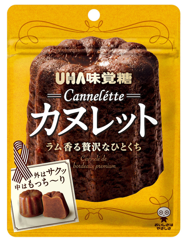 UHA味覚糖の新商品「カヌレット」は、フランスのボルドー地方の伝統菓子・カヌレを持ち歩きができるひとくちサイズにしたもの。