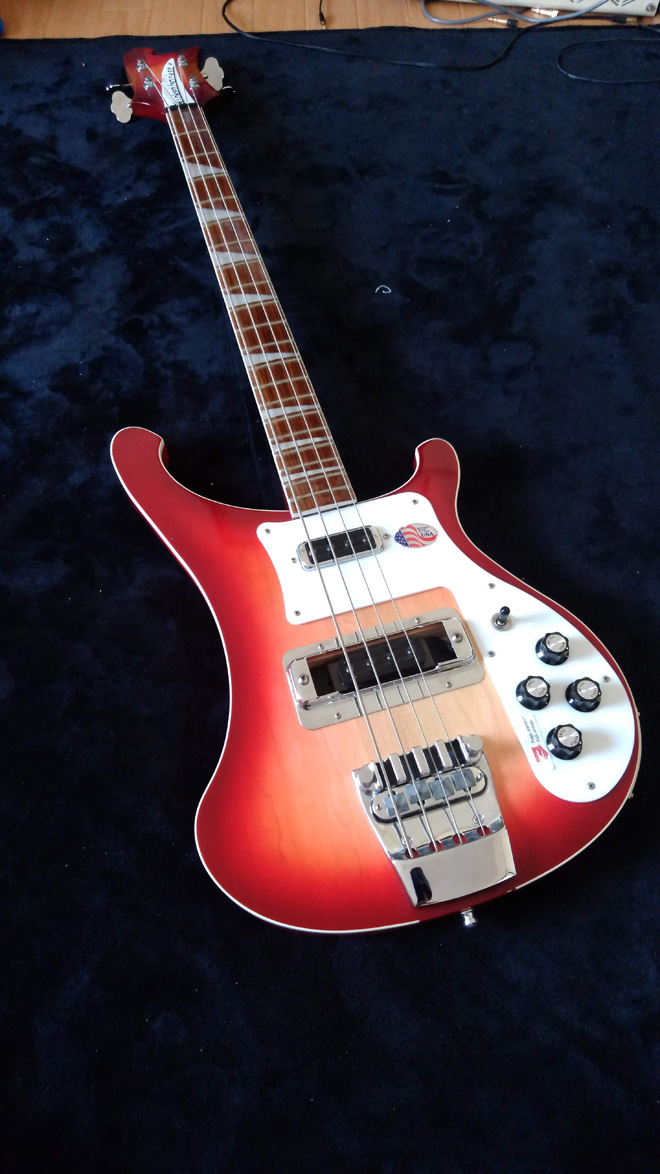 それから月日が立ち、暗黒の学生時代も終わり就職が決まった頃にコロナ禍でしたがこっそりと隣県に出掛け、ふと立ち寄った楽器屋でリッケンバッカーのベースを見つけました。リッケンバッカーは地元じゃ置いてある店も殆ど無い、しかも在庫セールで買えなくもない値段、そして一本のみ…こいつは俺が買わねばと思い高校時代アルバイトをして貯めたお金と、就職祝いで祖母から貰ったお金を使い、車を買うという親の約束を破り(地元では就職の際の採用条件が車所持のため車を持っていないと仕事ができなくなる)このベースを手に入れました。
