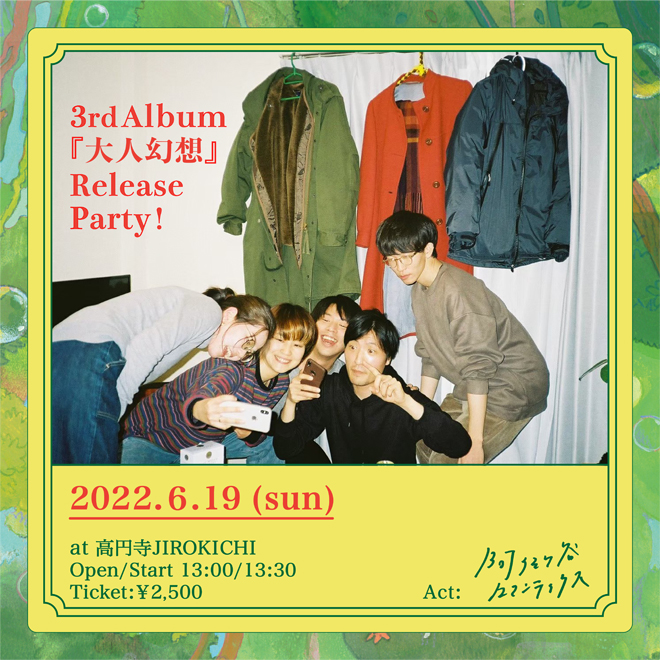 阿佐ヶ谷ロマンティクスが、3rd Album『大人幻想』のリリースライブを6月19日に高円寺JIROKICHIにて開催することが発表された。