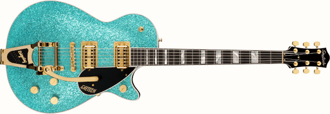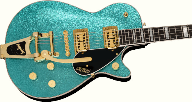 Gretsch Jetは65年間、ロックンロールの歴史の中で最も偉大なサウンドをいくつも生み出し、ステージやスタジオで活躍するたびにそのパワーを増強させてきた。全く新しい「G6229TG Limited Edition Players Edition Sparkle Jet BT with Bigsby and Gold Hardware」は、ブラックピックガードにChampagne SparkleとOcean Turquoise Sparkleの二色展開。音とパフォーマンスの両方において半世紀にわたる集大成とも言えるモデルになっている。