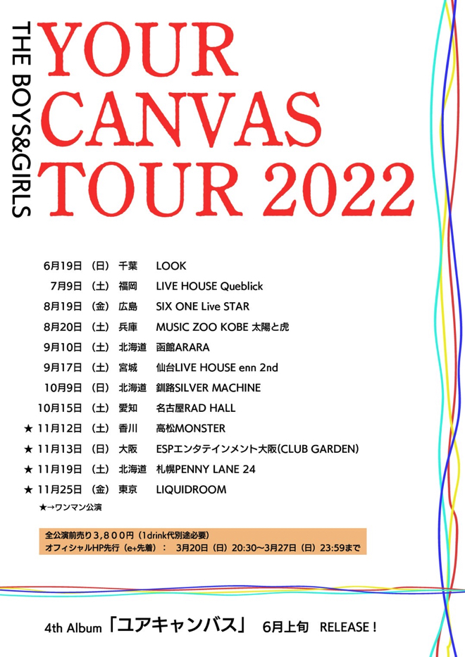 THE BOYS&GIRLS、ニューアルバム『ユアキャンバス』詳細発表