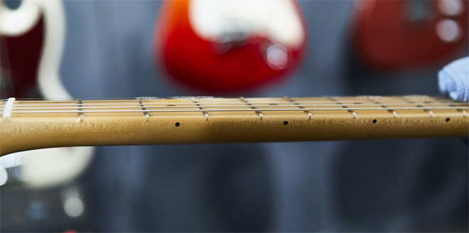 吉岡:ミディアムジャンボフレットですね。フェンダーじゃないギターを使っている方が持ち替えても違和感がないです。