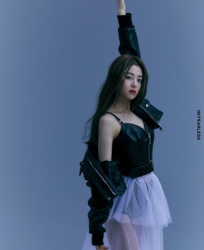 HUH YUNJINは公開された動画の中で、メガホンを手に大声で叫んだり、 絵の具だらけの手で楽しそうに絵を描いたり、 情熱的にエレキギターを演奏したりと、“世の中の視線に動揺することなく前に進むという自己確信と強い意志”を表すグループ名とも通じる自由奔放な姿を披露している。