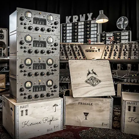 Kerwax ReplicaはKERWAXレコーディングスタジオに設置されている24チャンネルのカスタムチューブコンソールを抜粋して再現した2chチューブプリアンプ。KERWAXレコーディングスタジオの24chコンソールは社内のサンドエンジニアやプロデューサーの要望を満たす為にサウンドスタジオの伝統に基づいた考案されたユニークなミキシングデスクだ。