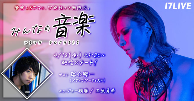17LIVEで4月15日21時30分より特別番組『みんなの音楽 with YOSHIKI』が配信される。