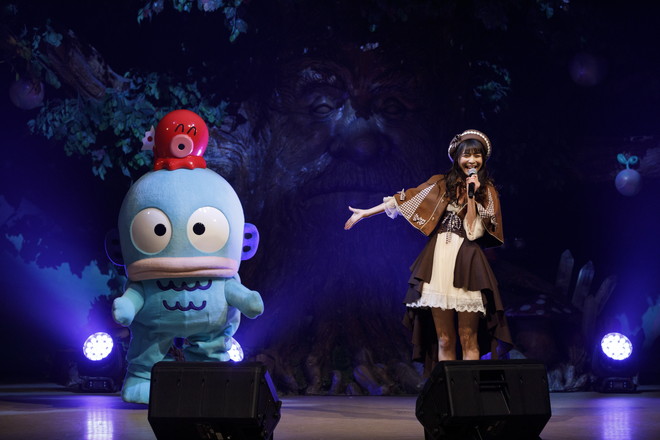 アンコールの手拍子が大きくなると、プリンくんが登場。ステージの丘の上からゆっふぃーが登場し、「世界で一番かわいい君へ」を披露。優しくて、かわいくて、愛おしくて……そんな空気をまといながら、プリンくんと一緒にパフォーマンス。「この曲、今日のために作ったんだと思った!」と話すと、ハンギョドンも再登場。ラストはサンリオピューロランドの定番曲「KAWAII FESTIVAL」でみんなでひとつに!