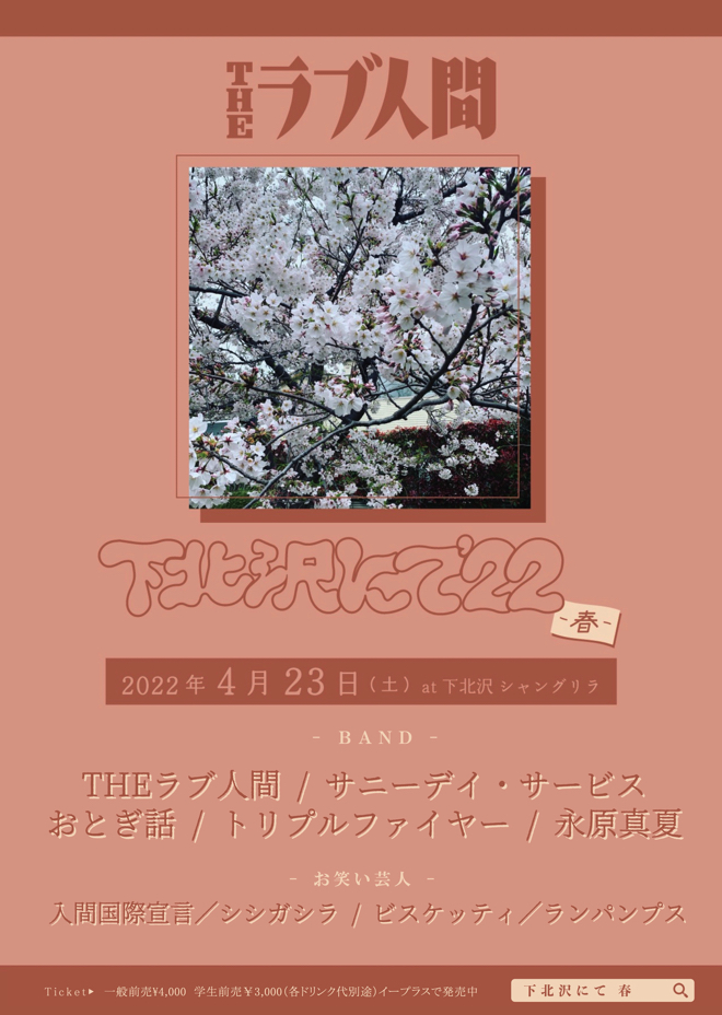 THEラブ人間が主催する<下北沢にて’22-春->が、4月23日に東京・下北沢シャングリラで開催される。同公演の出演者の第三弾発表が行われた。