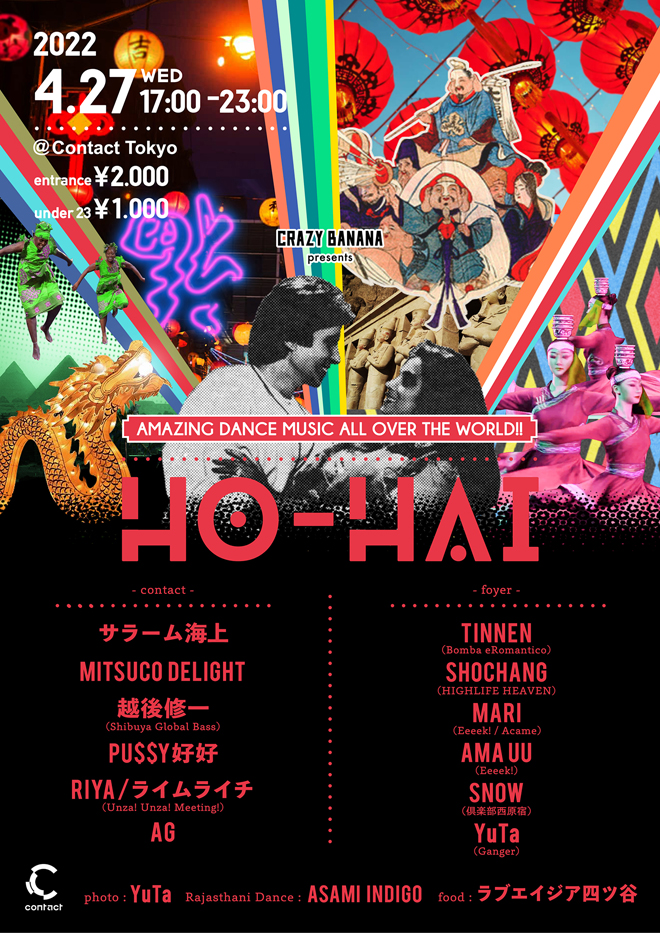 都内で活動するワールドミュージッククルー“CRAZY BANANA”によるパーティ<HO-HAI>が、サラーム海上やTINNENを始めとした世界各地の音楽の魅力を奏でる12人のエキスパートを招いてContactにて開催される。
