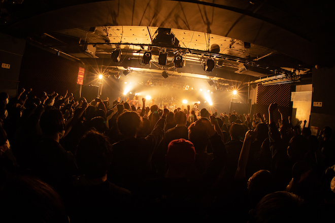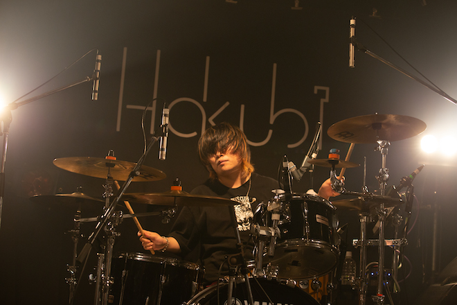 このツアーは全箇所が、切磋琢磨していきたい同世代のバンドと、各ライヴハウスがプッシュする地元のバンドとともに行うスリーマンライヴ。昨年開催された全国ツアー<極・粉塵爆発ツアー>やワンマンツアー<傾・粉塵爆発ツアー>と比較して、キャパシティの小さい会場が多い。バンドの勢いが増しているこのタイミングだからこそ、今一度バンドの原点であるライヴハウスへと立ち返る──ひとつひとつの物事と過剰なくらい真剣に向き合っていくHakubiにおいて、そのメンタリティは非常に腑に落ちる。自分たちの大切にしたい文化をあらためて噛み締めるだけでなく、それを自分たちの音楽を愛する人々と共有したい。セミファイナル公演も、そんなピュアな思いが迸るステージだった。